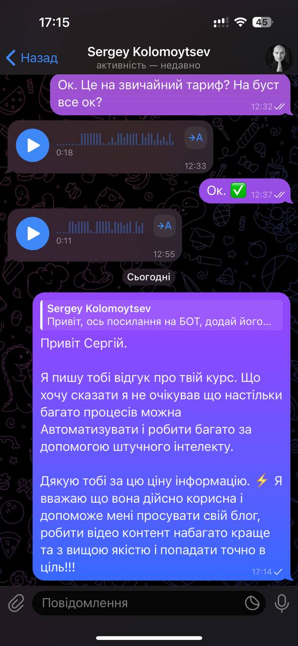 Одразу після оплати вам відкриється сторінка доступу до Телеграм боту, у якому і пройде навчання.